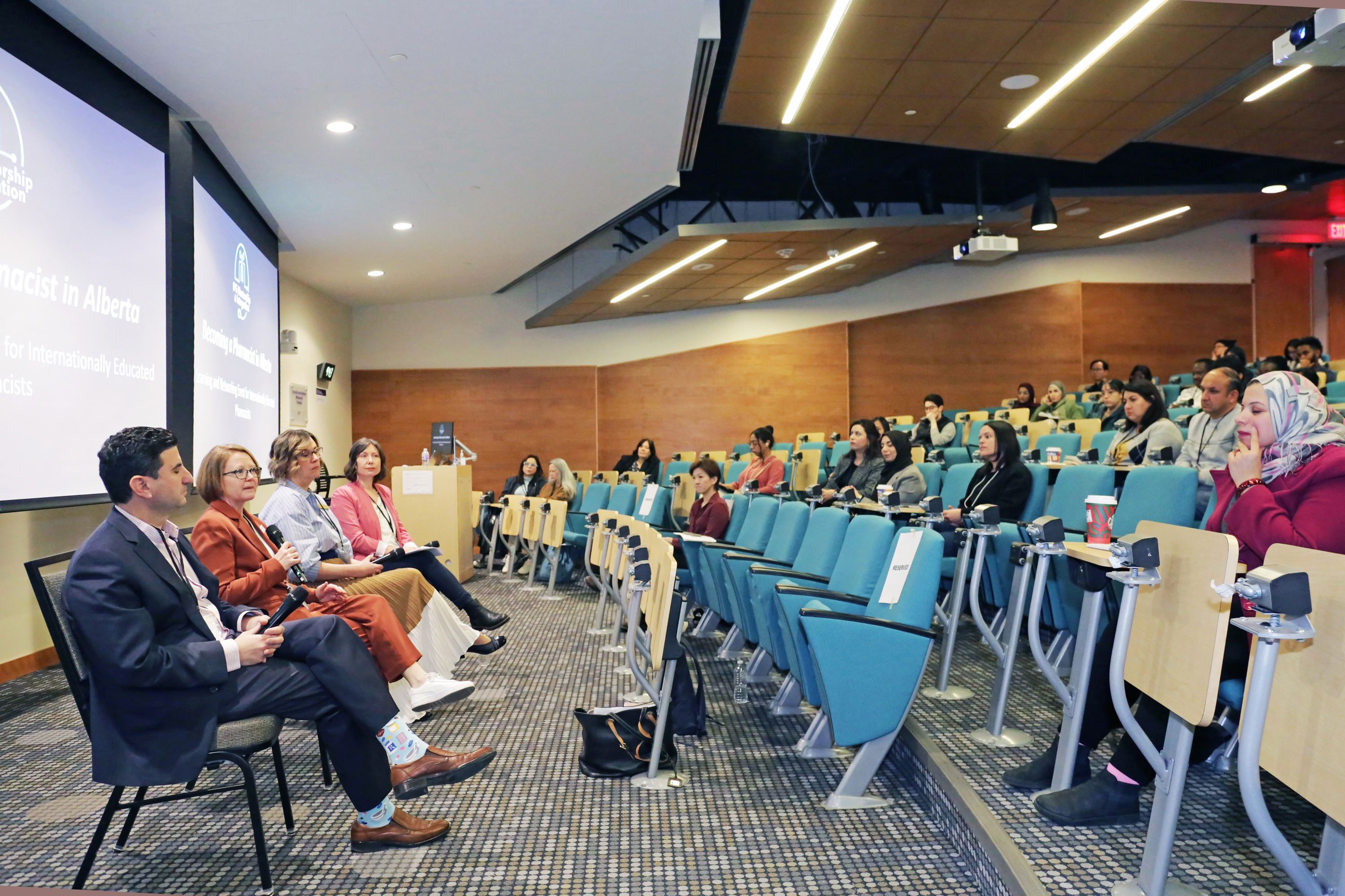 Organisé en collaboration avec Directions for Immigrants du Bow Valley College, cet événement a réuni diverses organisations influentes sur l'octroi des permis d'exercice et la pratique de la pharmacie dans la province, notamment l'Alberta College of Pharmacy, le Bureau des examinateurs en pharmacie du Canada (BEPC) et le programme Certificate to Canadian Pharmacy Practice de l'Université de l'Alberta.