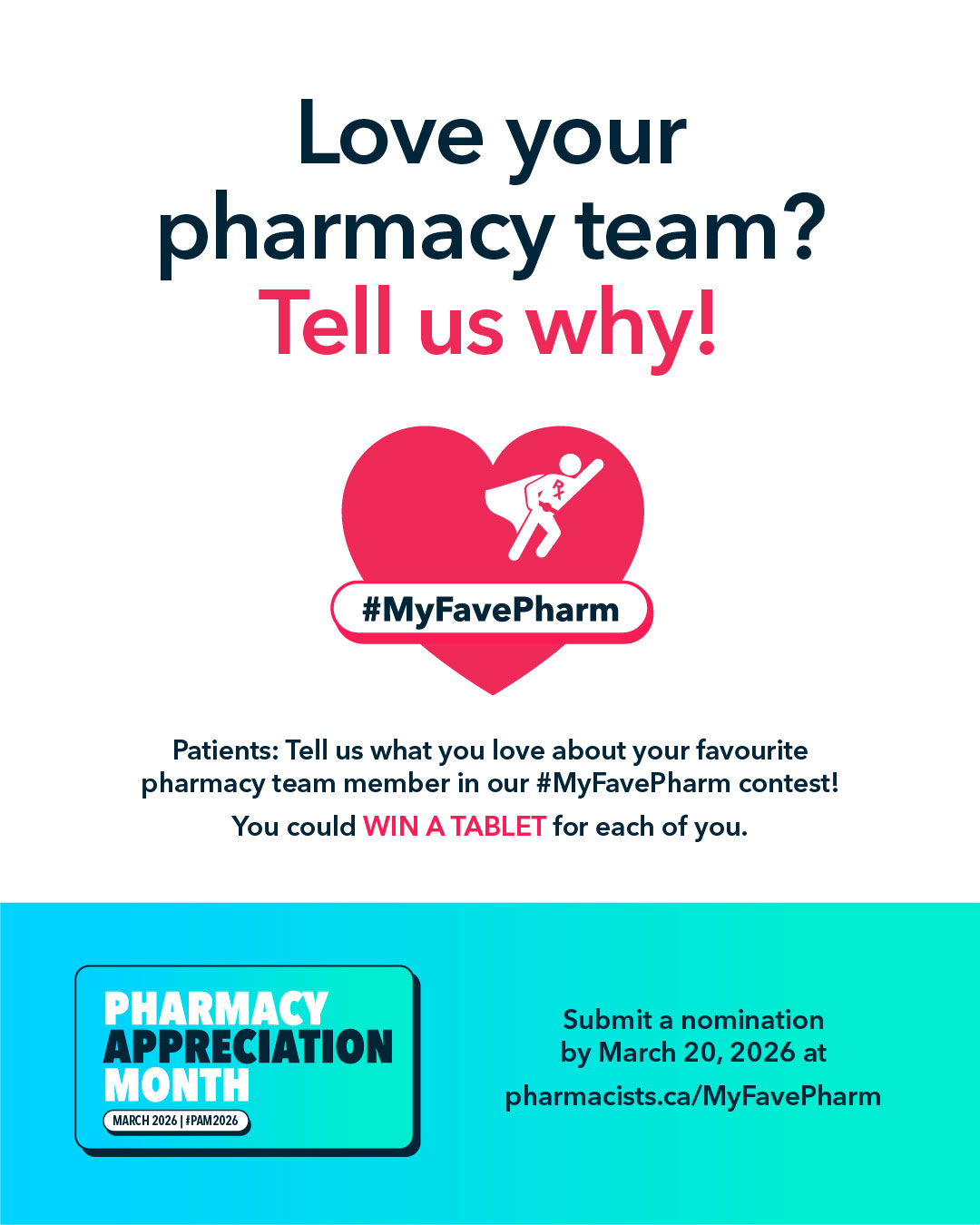 Let’s help Canadians appreciate their #pharmacy teams this March during Pharmacy Appreciation Month. Visit www.pharmacists.ca/pam for tools and resources to help you get involved and share your story. #PAM2026